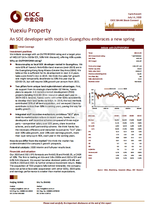 7月14日,著名投行中金公司首次覆盖壹号娱乐地产股份有限公司(股份代号:00123.HK),给予“跑赢行业”评级,设定目标价为2.07港元,对应6.5倍2020市盈率和50%的NAV折让,较当前股价有40%的上行空间。此评级是中金公司对壹号娱乐地产大湾区布局、独特的增储方式、稳健的资金支持及员工激励机制的认可。